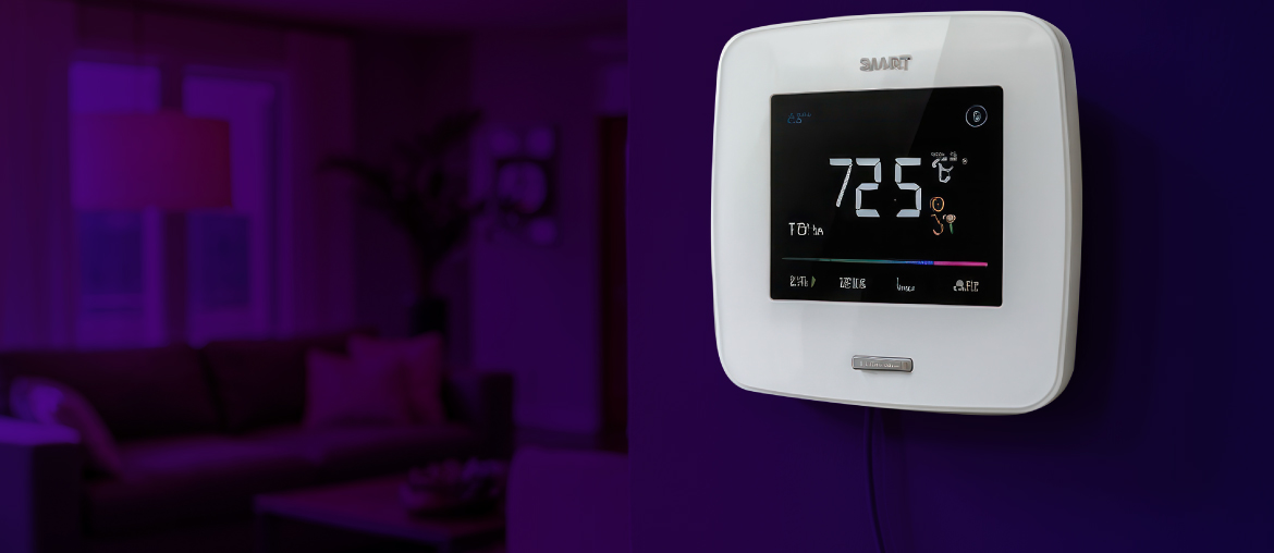 Termostat yang menyesuaikan suhu ruangan berdasarkan perubahan suhu lingkungan. Jika suhu naik di atas batas tertentu, termostat akan menyalakan pendingin udara.