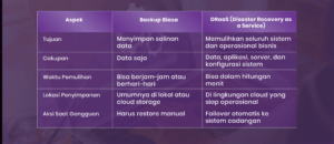Jadi, kalau backup adalah “menyimpan data”, maka DRaaS adalah “menghidupkan ulang bisnis” saat terjadi bencana.